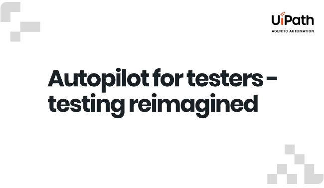 Get a first look at Autopilot for Testers and how generative AI is transforming test case creation. Discover how AI can analyze application behavior, uncover edge cases, and generate comprehensive tests—helping you move faster while improving coverage in UiPath Test Cloud.